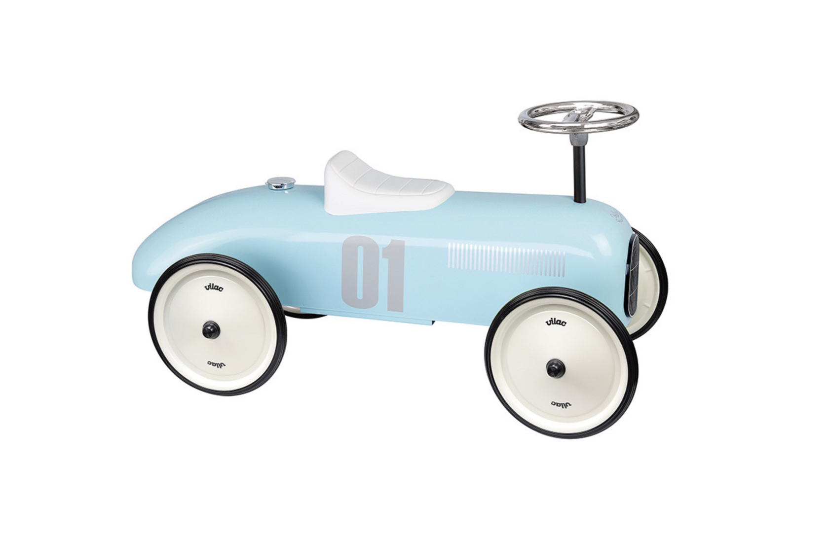 Толокар Vilac: Удобное сиденье, руль, устойчивые колеса, подходит для активной игры и первых поездок по дому.