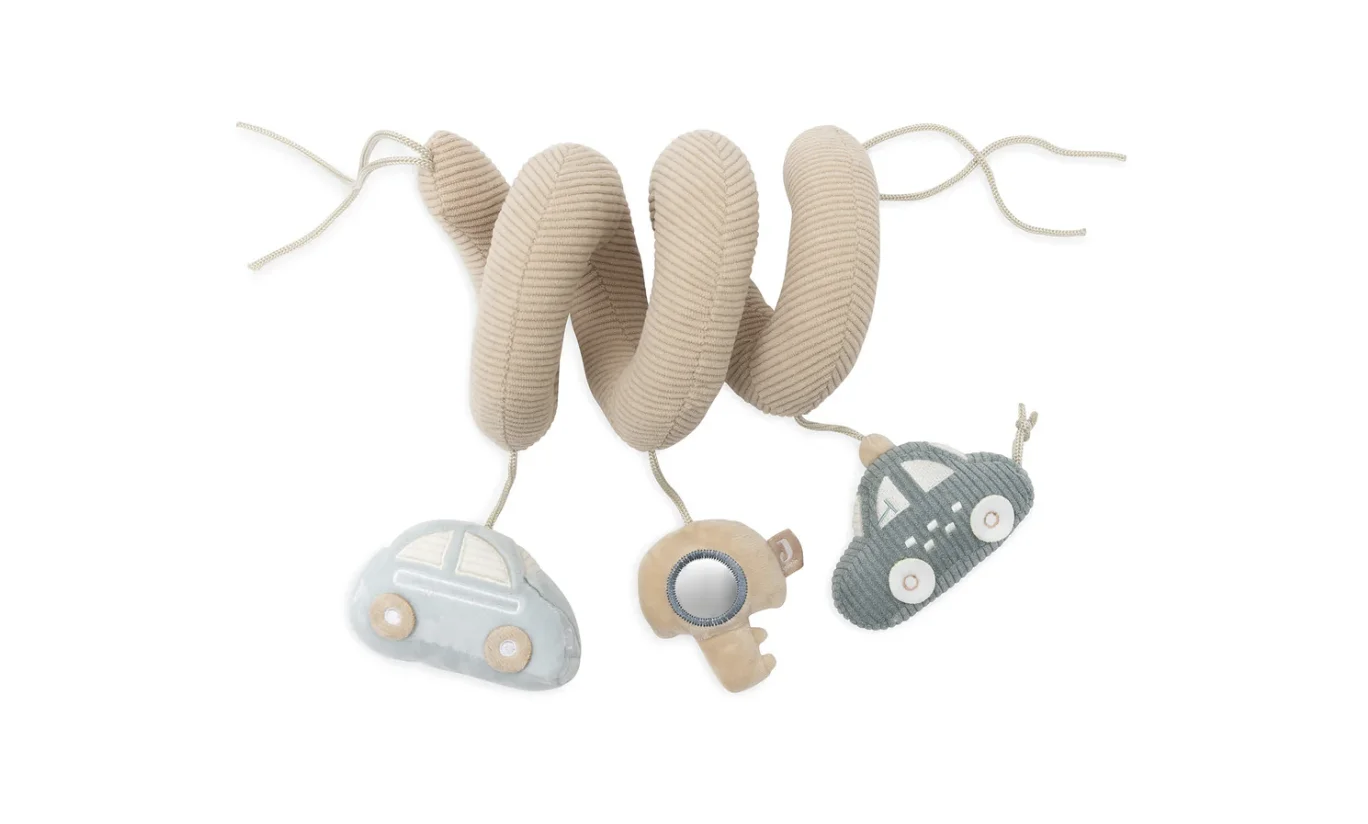 Развивающая спираль On The Go Jollein. Крепится к коляске или автокреслу, у игрушки разные элементы для трогания и изучения.